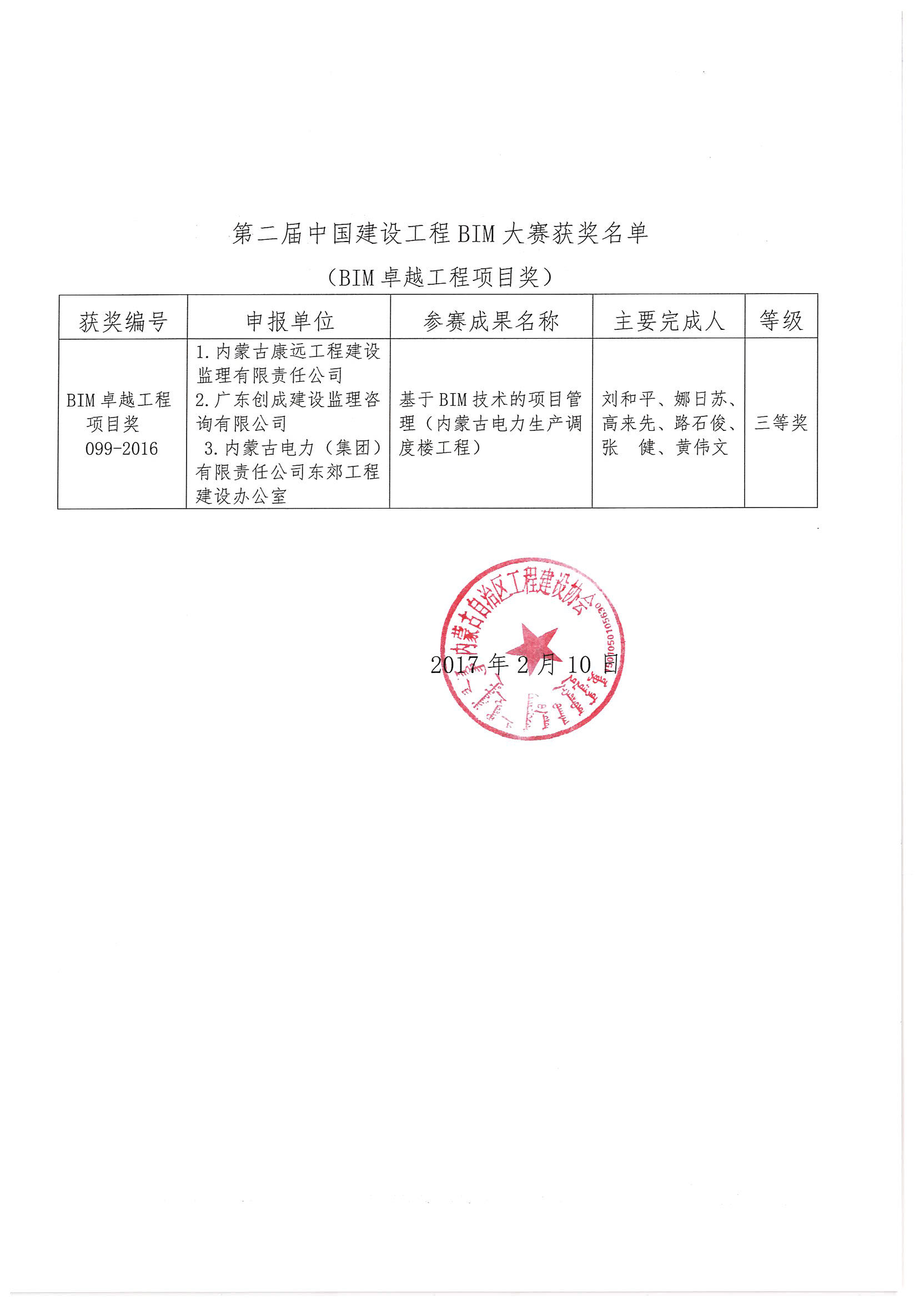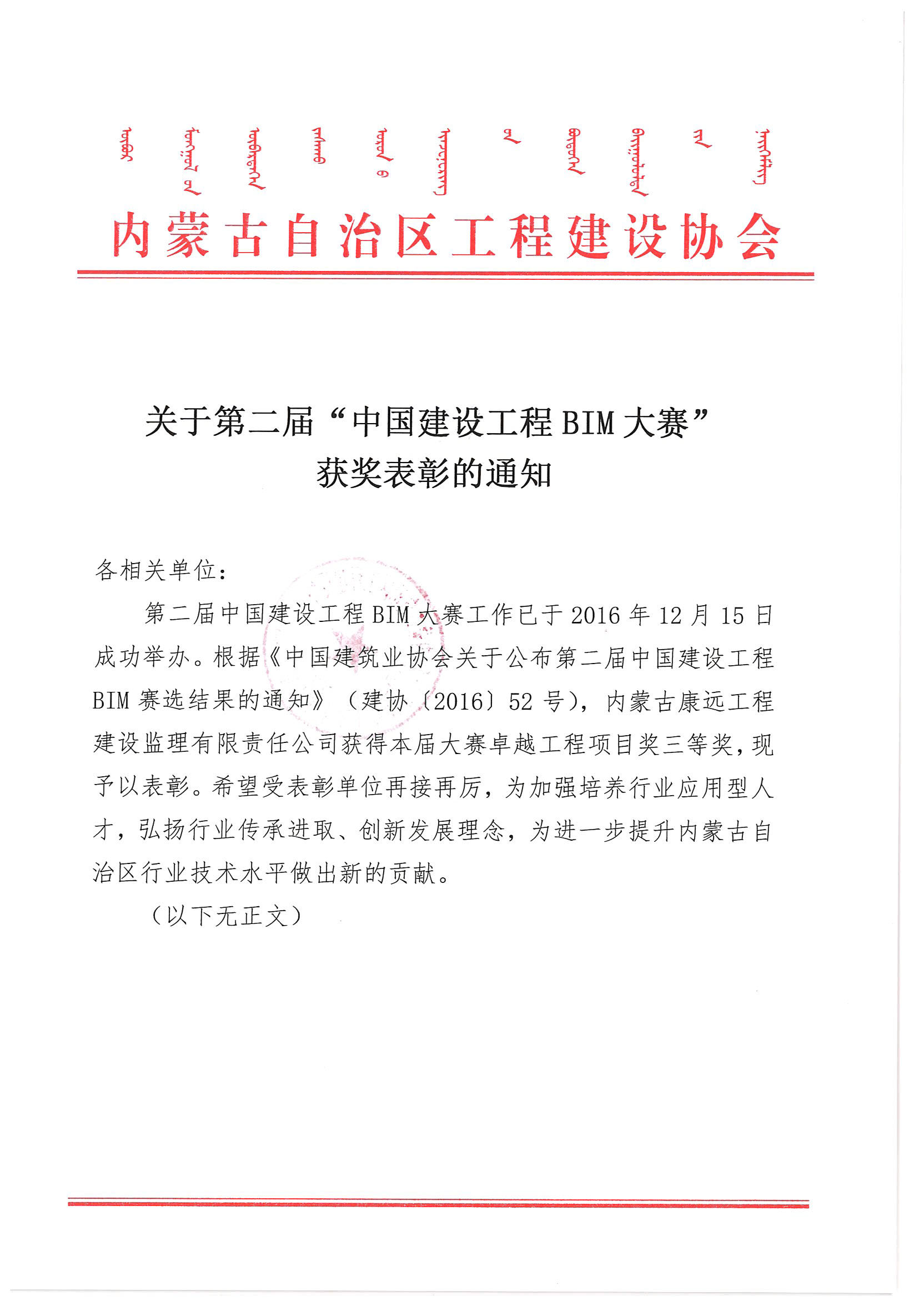 關于第二屆“中國建設工程BIM大賽”獲獎表彰的通知